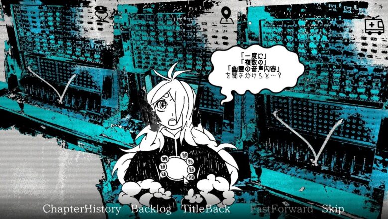 ゲームを立ち上げて真っ先に目に飛び込んできたのは、画面上に次々と表示される通話ログの文字列。幽霊たちの声が重なり、うねるようにテキストバブルが拡散していく様子は、“雑音の海”に飛び込んだような感覚がありました。実際に慣れるまでは少し時間がかかりますが、重要な個所を視覚的にわかりやすく提示してくれるので、初心者にもプレイしやすい設定になっています。またプレイを続けるうちに「あ、これはこういうパターンだ」と判断できるようになり(そこをうまくひっかけてくるパターンもあるのですが・・・!)、その変化こそがこのゲームの醍醐味だと感じました。