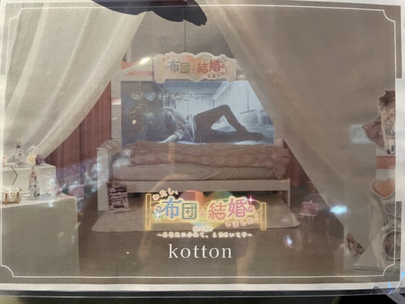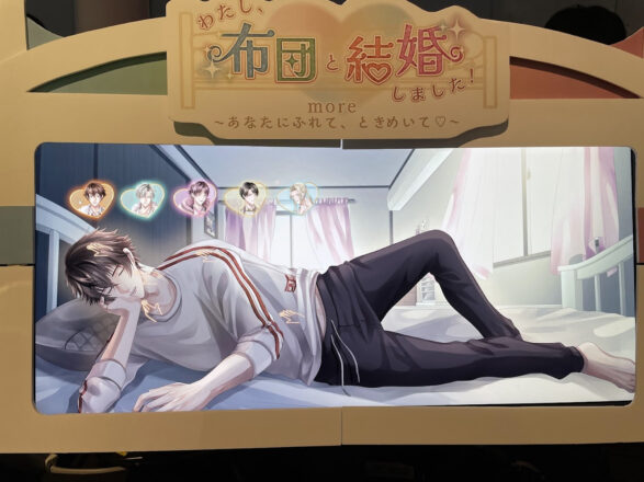 『わたし、布団と結婚しました!』は等身大サイズのイケメンと添い寝できる新感覚の体験型乙女ゲームです。会場ではモニターでの展示となっていましたが…ベッドのセットなどが実際にあると臨場感がヤバいんです。