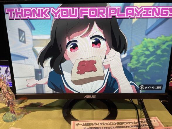 ヘキサドライブのブースでは三人称視点で展開する和風ホラーアドベンチャー『■■ノニラヤ』の試遊展示で盛り上がっていました。和室を再現しているブースでプレイするホラーゲームって雰囲気ありすぎて最高でした。その昔、実家にて一人留守番していた時に感じたことのある不穏さも思い出しつつ撮影をさせていただきました。