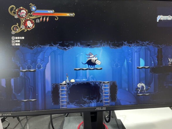 インティ・クリエイツのブースでプレイした『魔女ガミ-The Witch of Luludidea-』は記憶喪失の魔女「シロハ」が紙キレの姿となった父「シオリ」と共に、その手に持つ刀「カミキリ」でカミの化け物たちを斬って奇々怪々の世界を駆け抜けていく2D横スクロールアクションゲームです。