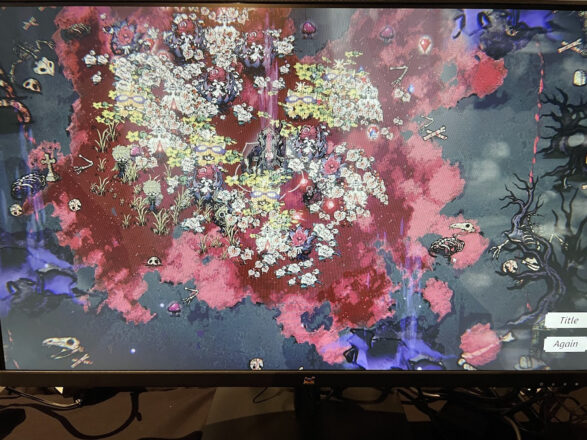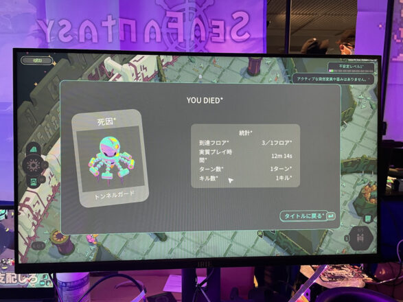 会場では遊びきれないくらい沢山のゲームで溢れていました。『SONOKUNI』『こふんは生きている ーマホロヴァ・クラブの死体さがしー』『Aksun』『RATATAN』『メンヘラリウム』などプレイしたいなと思っても遊べなかったタイトルが多数…3日目はもっと絞って行かなければと考えながら会場を後にしました。