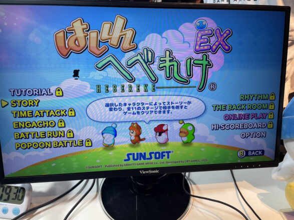 グラビティゲームアライズのブースでは『Aeruta(アルタ)』『はしれへべれけ EX』『Twilight Monk』『Light Odyssey』『The Good Old Days』『Final Knight』の試遊展示がおこなわれており賑わいをみせていました。今回は試遊タイトルに凄く悩んだ結果、タイミングよく空いた『はしれへべれけEX』をプレイ!