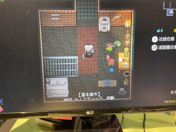 『PIXEL DASH Toast of Destiny』はどこか懐かしいドット絵テイストで描かれた横スクロール型の激走JKアニメアクションゲームです。アニメで展開するストーリーにワクワクしながら…何度かチャンスを伺って、席が空いた隙にプレイしました。カワイイビジュアル、アニメーションでのんびりゆるく…そんな気持ちを吹き飛ばす障害の数々…気が付けばタイミングを図り一歩ずつ先に進んでいくガチプレイになってしまったことは言うまでもありません。