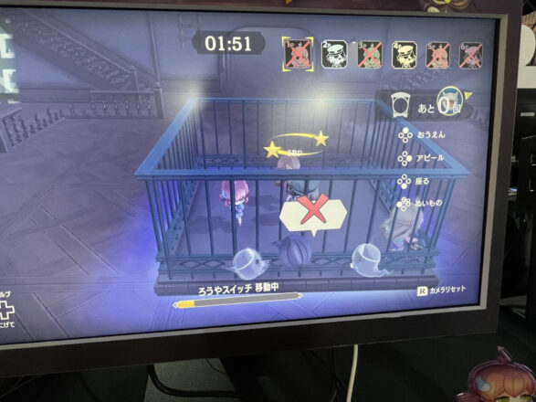 こんな風に捕獲されると牢屋に集められるのですが、これを助けるのもチームプレイの醍醐味ですよね!まあ、捕まっている側なので応援したり、まったり縫物したり…これはこれで他力本願プレイが基本の筆者にとっては見慣れた光景なので…応援しながらカワイイアクションを堪能していました。今回のプレイは味方が1度助けてくれて、このまま逃げ切れるかと思ったらオバケ側のファインプレイもあって…惜しくも負けてしまいました。正直、悔しいし凄く白熱したケイドロが楽しくて、次はオバケ側を体験したいなと後ろ髪を引かれながらも今回の試遊を終えました。