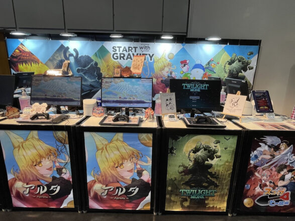 「Google Play ベスト オブ 2023」のゲーム インディー部門において大賞を受賞した『ローグウィズデッド』をはじめ『ピギーワン SUPER SPARK』、プレイアブル初出展となった『トロイメライの月あかり』など試遊展示などで終日混雑していたブースを一般来場者が入場する前の時間だからこそ撮影できた1枚。一般入場開始とともに一瞬でこの辺りが人で埋まったことは言うまでもありません。