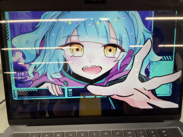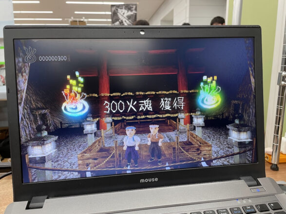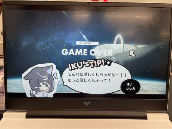 イベント会場はプレイをしている様子をクリエイターの方々はもちろん、来場者の方も目にすることができるオープンな環境ですが、その場所で真剣にもふもふしようとプレイをする筆者…1度はゲームオーバーとなったけれども再チャレンジ!