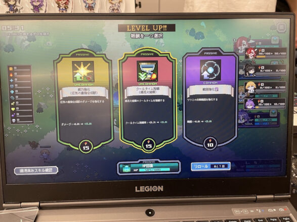 『Mayhem Maidens』はライトノベル「我が焔炎にひれ伏せ世界」の個性豊かなキャラクターを同時に操作しながら、自由にデッキを構築し、戦略的に敵の侵略を阻止するタワーディフェンスとローグライクデッキ構築要素が融合したゲームです。それぞれ特徴のあるキャラクターを切り替えて進めていくのですが、周辺の確認を怠ると…早々に球根が攻められるので敵のWAVEに対してどんな陣形で臨んでいくかを試行するのが本当に楽しい!