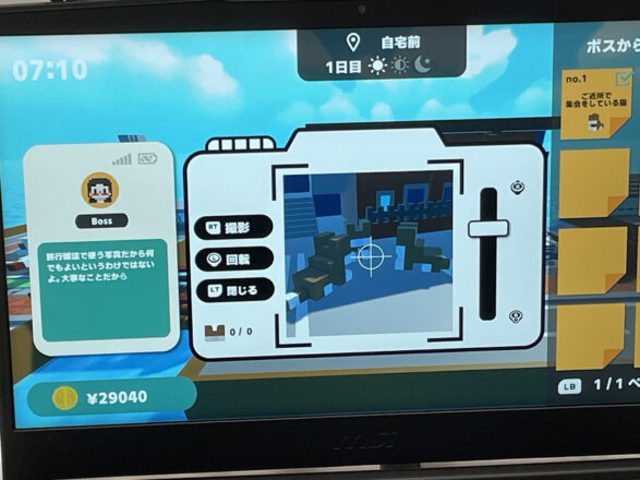ボスからの依頼を確認しつつ、ファインダーを覗くことで見られる景色に癒される…旅行を楽しんでいる感覚はもちろん、何気ない風景をじっくり見て心が癒される優しい体験ができるゲームです。